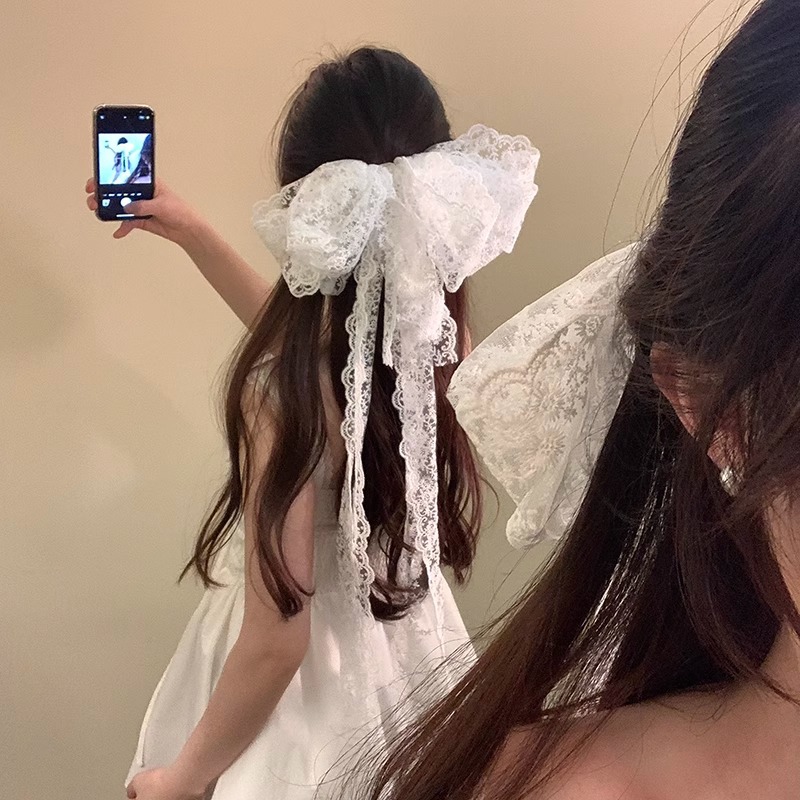 优雅气质蝴蝶结飘带头饰发夹女后脑勺蕾丝超仙发卡高级感发饰弹簧