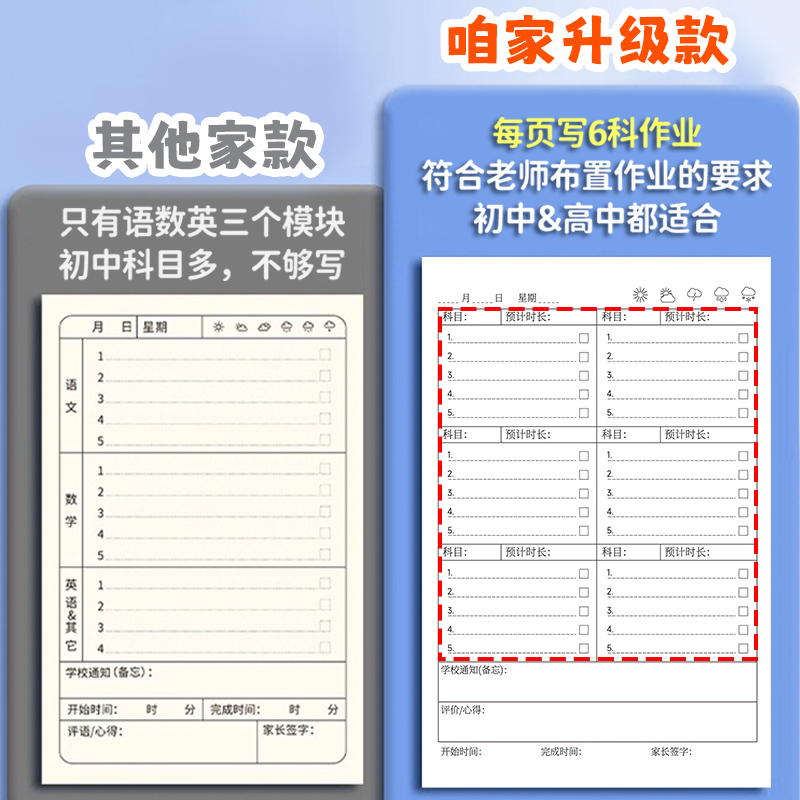 初中作业登记本记事本卡通可爱抄作业本老师推荐初一初二初三家庭作业励志本子高中每日作业记录本家校联系本