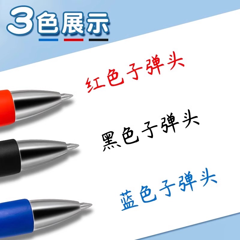 按动中性笔大容量水笔学生用考试K35碳素黑色水性签字笔0.5mm笔芯按压式子弹头圆珠笔墨蓝黑红笔教师办公文具
