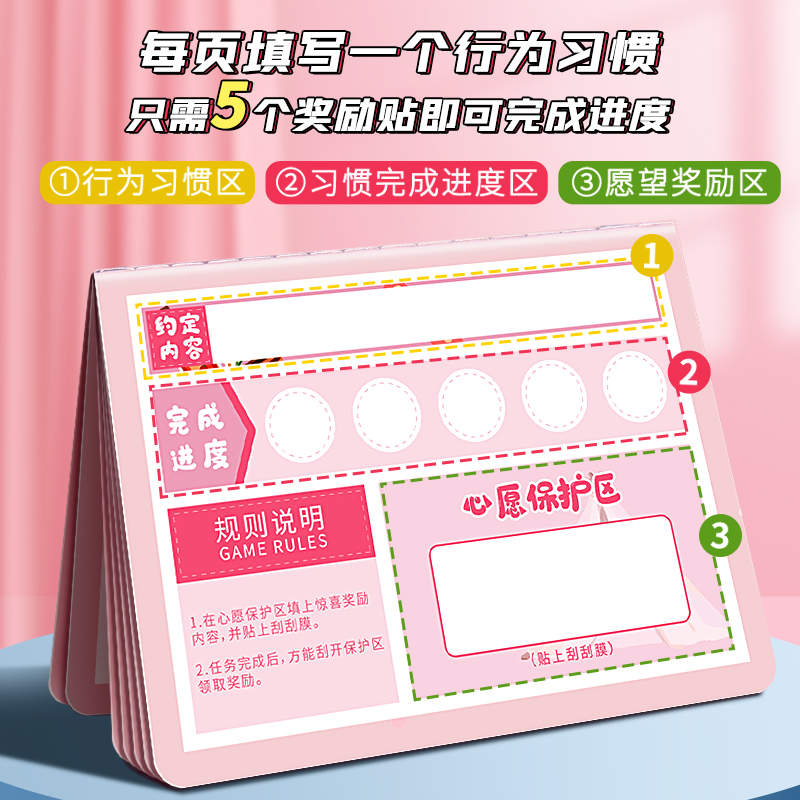 儿童成长自律表家用贴纸奖励孩子的积分卡记录好习惯行为养成学习计划小学生作息时间打卡本幼儿园心愿刮刮本