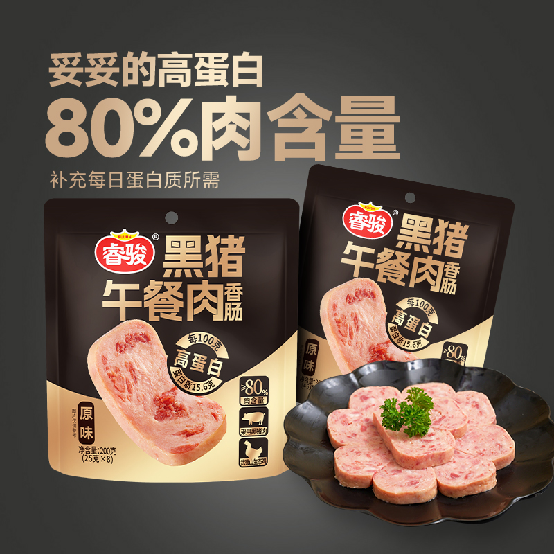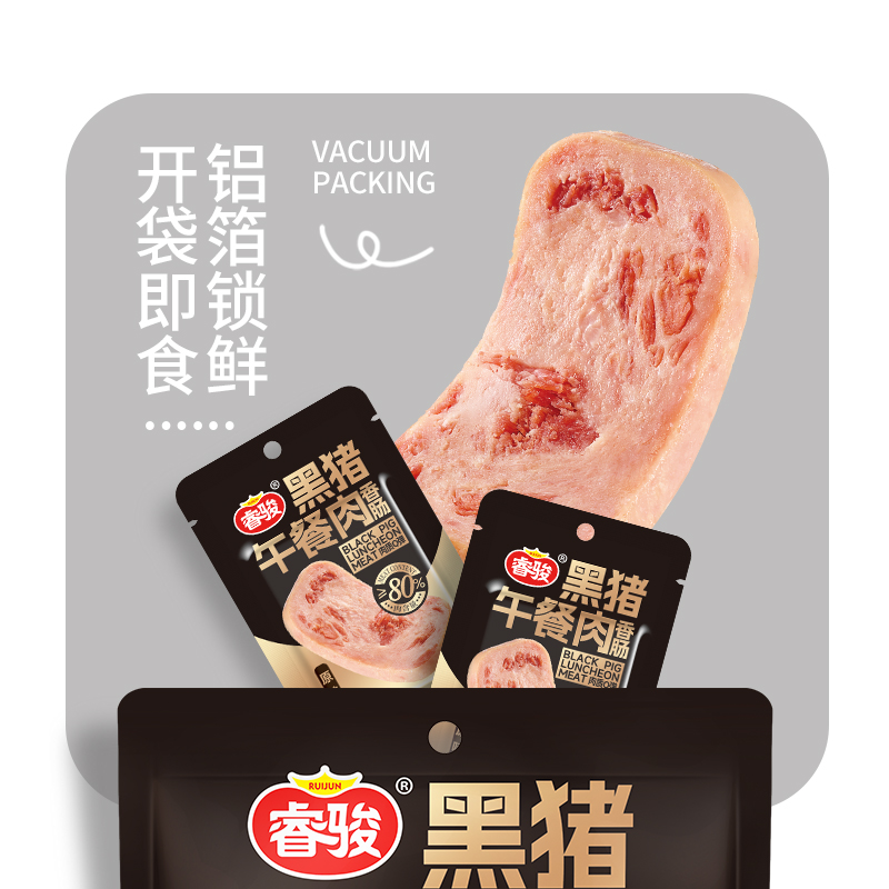 睿骏黑猪午餐肉单独包装即食火腿肠香肠片猪肉零食早餐三明治专用