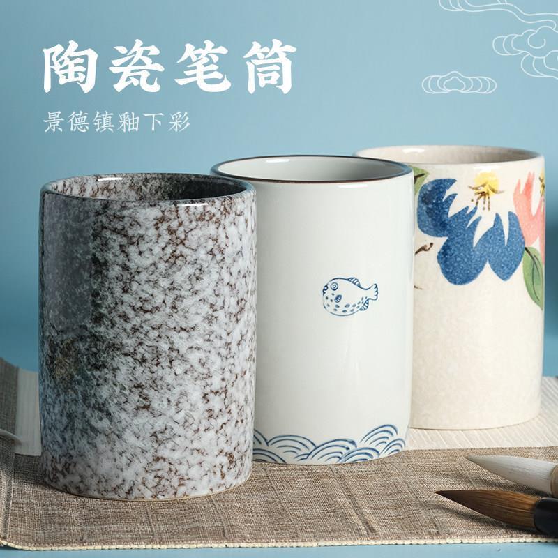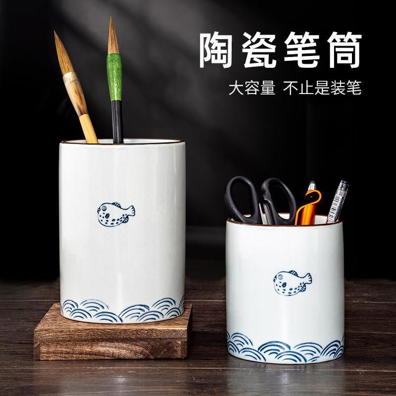 现货速发202陶瓷多功能笔筒办公桌面收纳桶毛笔收纳盒文房四宝用