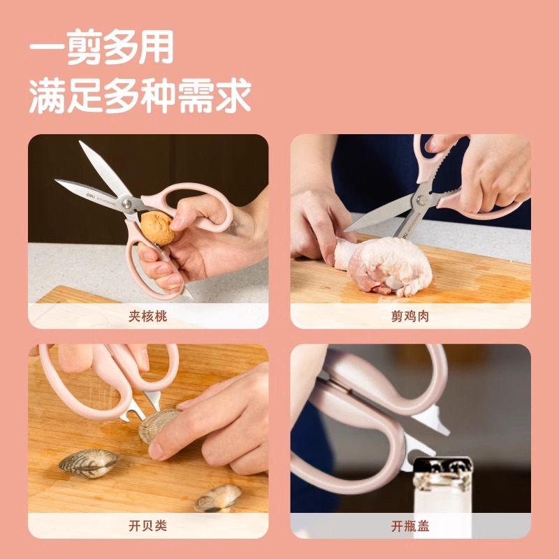 得力多功能厨房剪刀超锋利食品级特大号不锈钢日式强力鸡骨剪家用剪肉杀鱼食物剪子剪肉剪菜剪鸡骨头