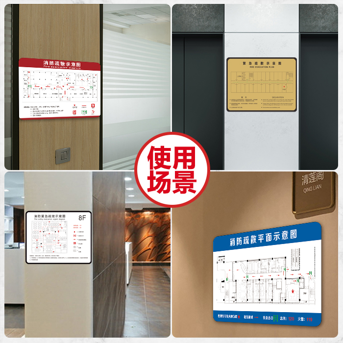 消防疏散示意图安全逃生指示牌亚克力制作学校宾馆酒店办公楼公寓宿舍消防通道分布路线标识牌应急逃生平面图
