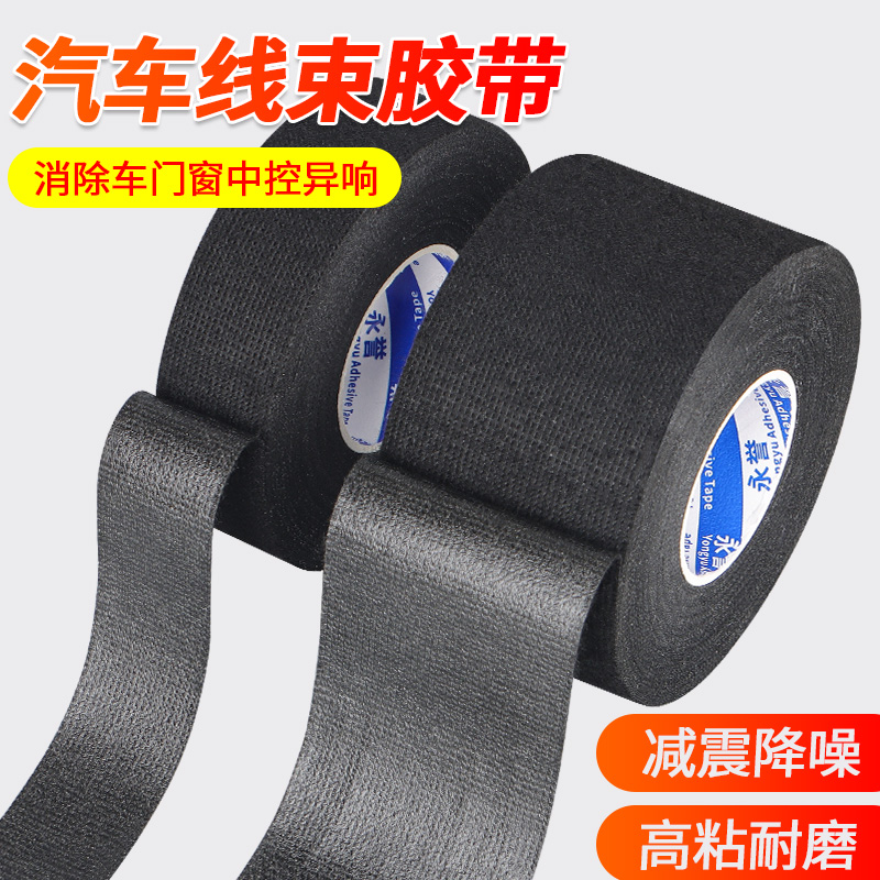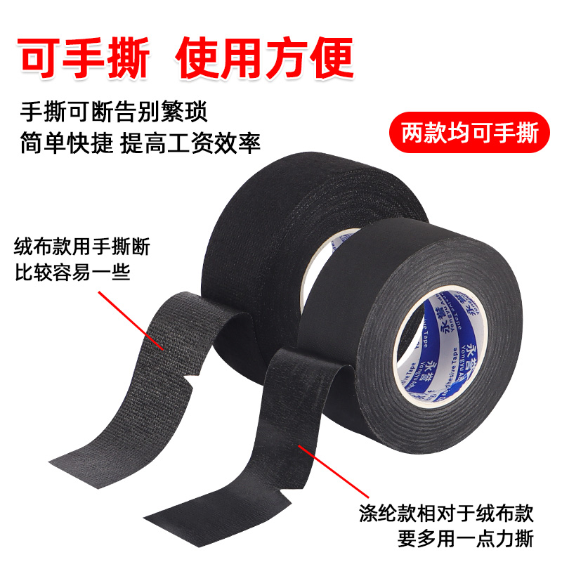 汽车线束绒布胶带耐高温性好发动机舱缠绕胶带超粘降噪线路电线束捆扎电工走线屏蔽胶布消除中控异响线束胶带
