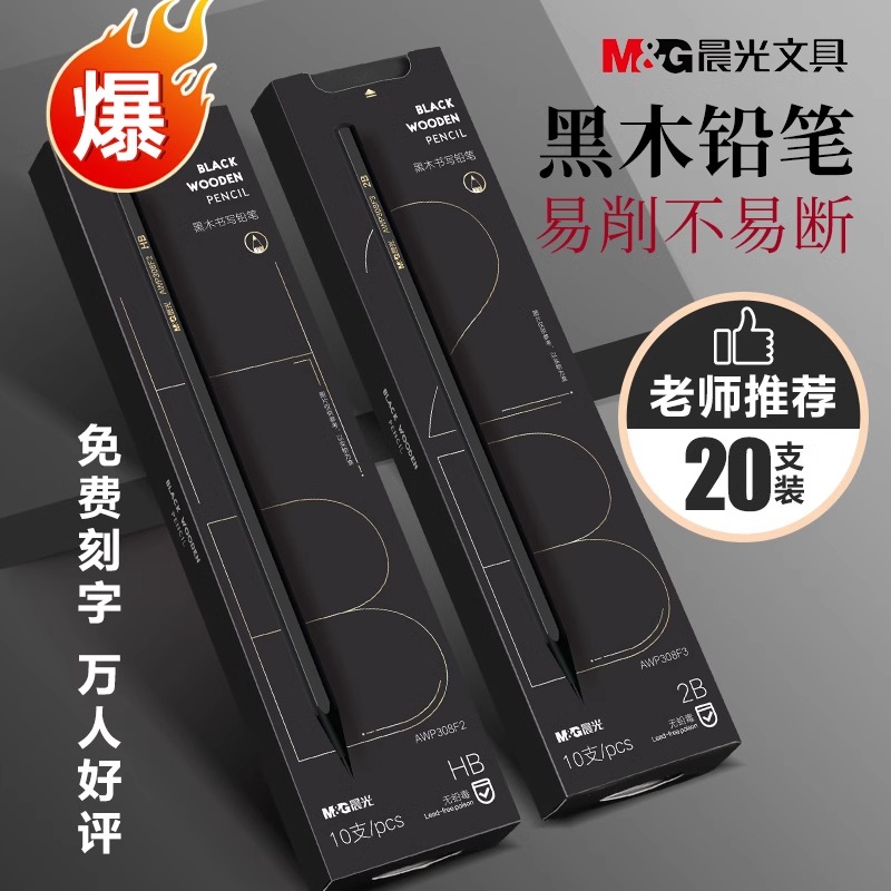 晨光黑木铅笔小学生专用HB铅笔安全无毒一二年级学生考试2B铅笔