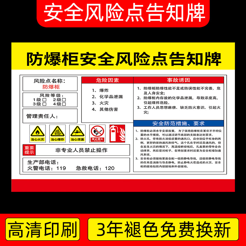 防爆柜安全风险点告知牌贴纸配电房室工厂车间仓库空压机床行车标识牌生产工厂有限空间周知卡警示牌定制