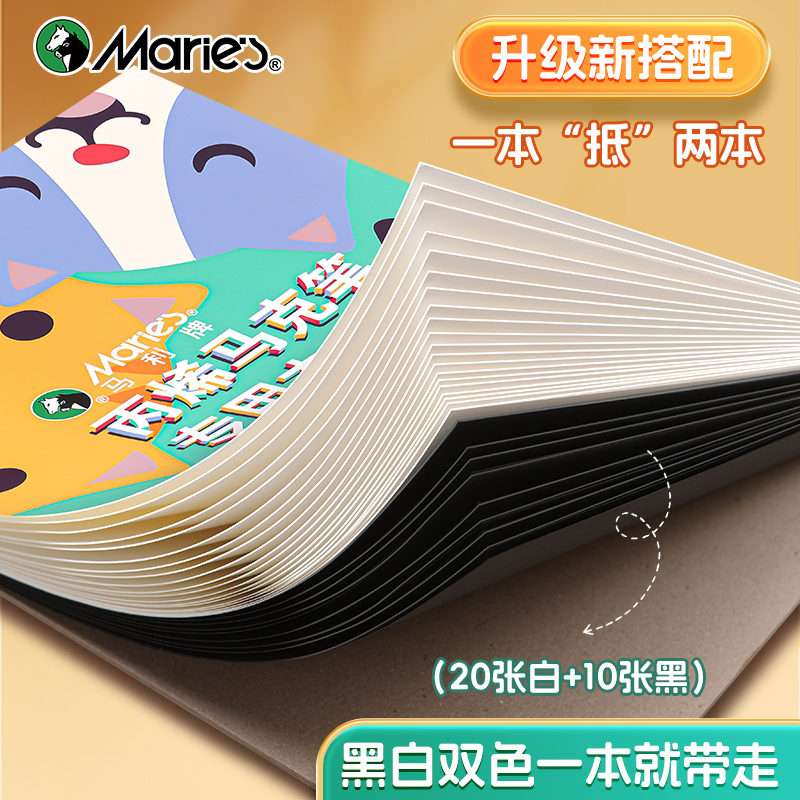 马利丙烯马克笔专用本a4马克本黑白可撕a3小学生绘画本儿童卡通120g加厚不透色美术画纸画画本子8k空白图画本