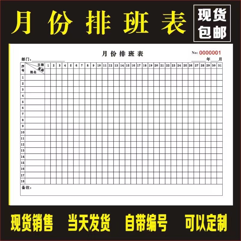 定制A4月份排班表工p作安排y派发日C期月份员工轮休考勤表格值班