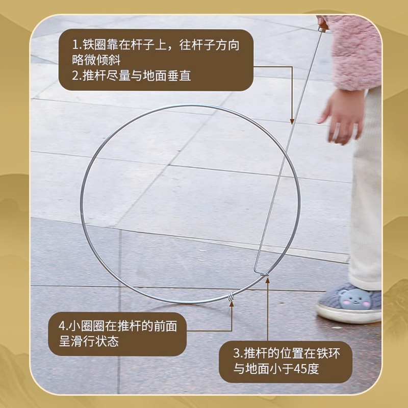 铁环滚铁圈儿童小学生滚铁环风火轮80后怀旧玩具成人扁粗实心推圈