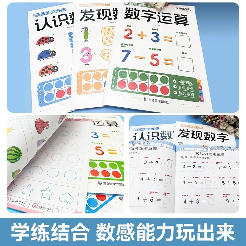 幼儿数感启蒙思维训练教材教具 幼儿园小班中班大班幼小衔接数学思维阶梯练习册 儿童认识数字1到10-20的分解组成加减法练习题