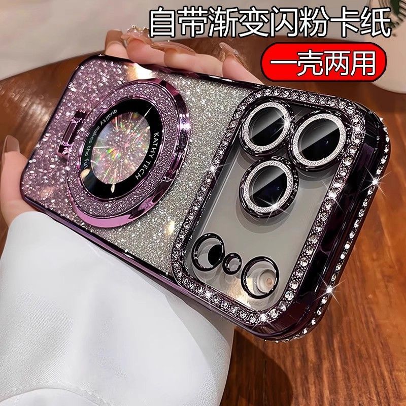 适用苹果17promax手机壳iP16钻边闪粉护眼15/14磁吸支架13/12防摔
