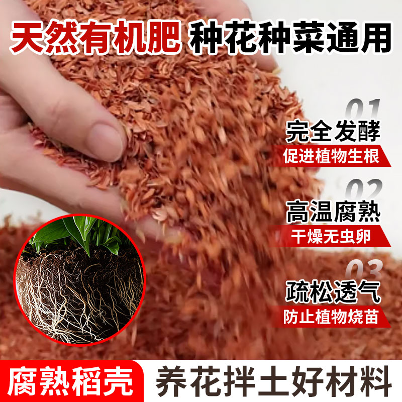 稻壳发酵腐熟稻壳炭鲜稻壳谷壳有机肥料园艺通用养花种菜通用专用