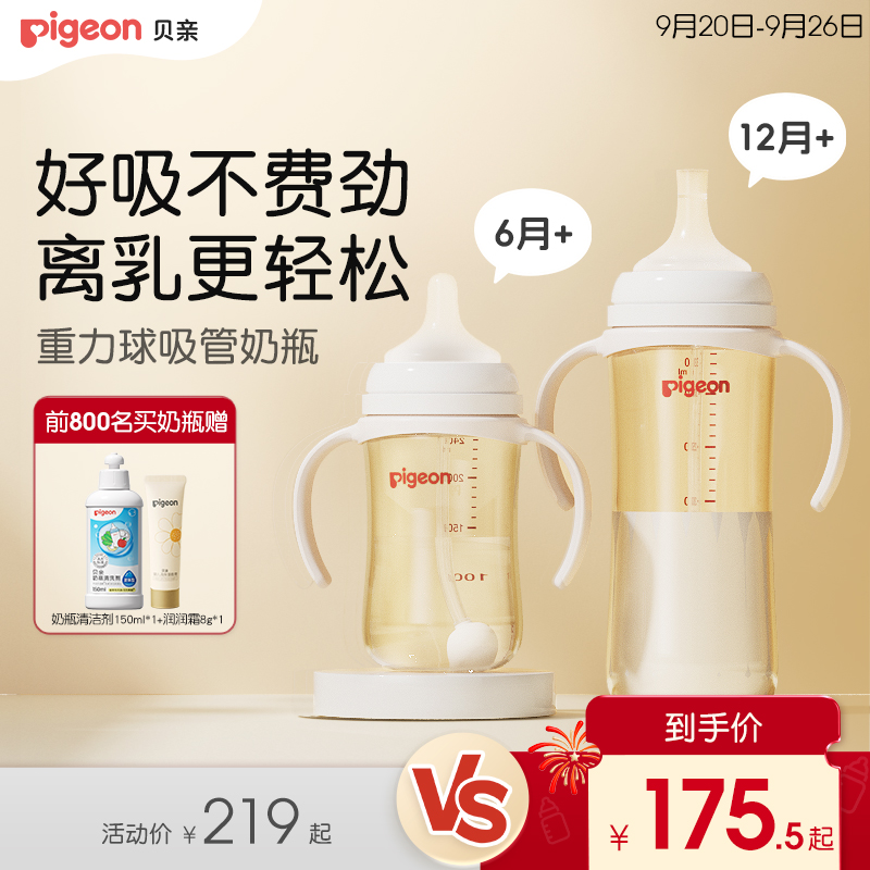 贝亲自然离乳PPSU重力球吸管奶瓶防胀气防呛学饮杯官方旗舰店正品