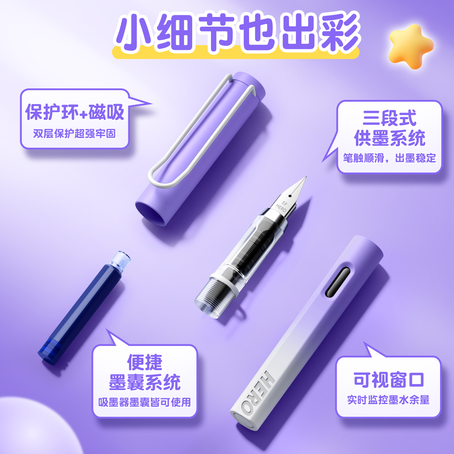 英雄牌磁吸钢笔三年级小学生专用书法练字可换墨囊不漏墨钢笔吸墨式高颜值女生儿童初学者专用四年级正品官方