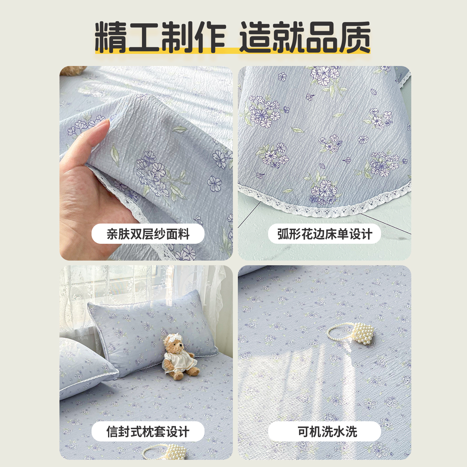 A类母婴双层纱床单床上用品三件套四季可用出租房学生宿舍枕套