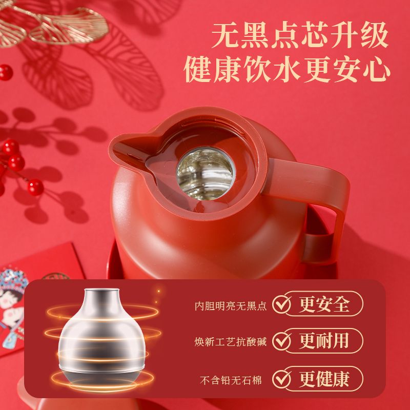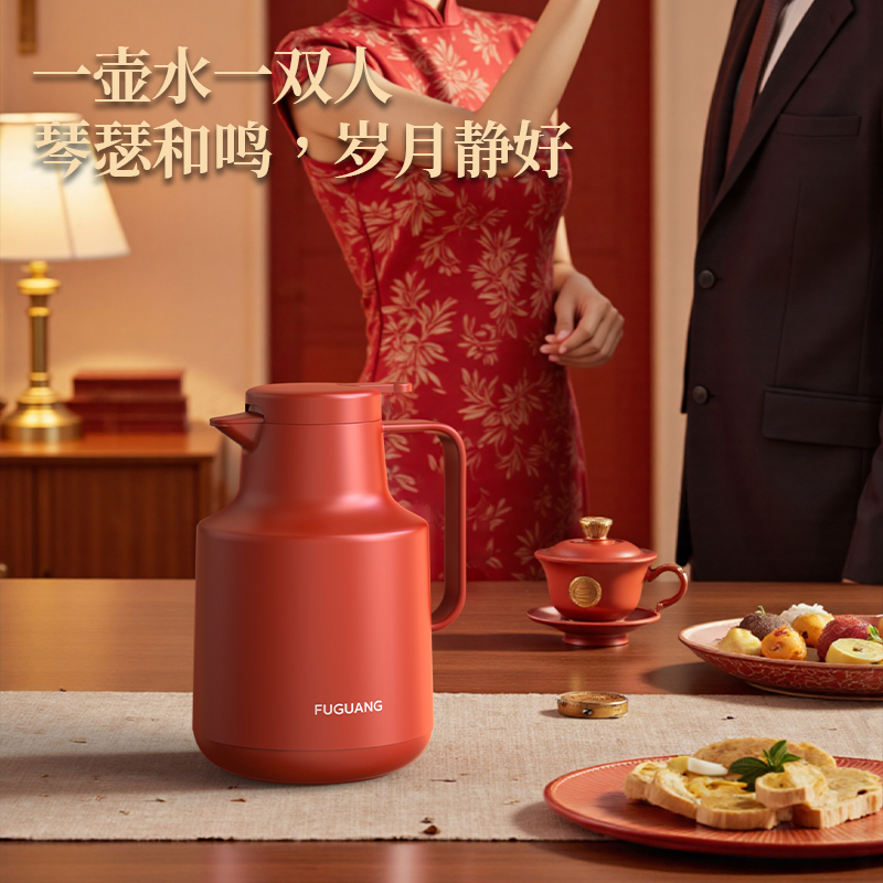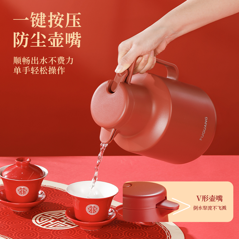 富光保温壶家用结婚红色陪嫁一对玻璃内胆暖瓶送礼水壶大容量暖壶