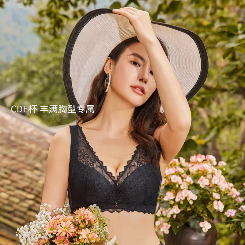洋奢无钢圈薄款内衣大小胸聚拢收副乳防下垂无痕运动美背防震文胸