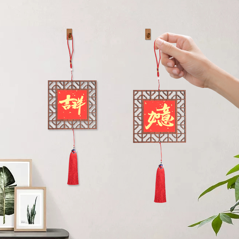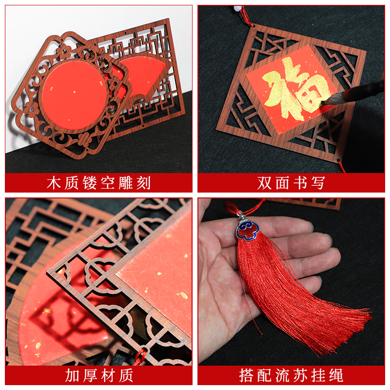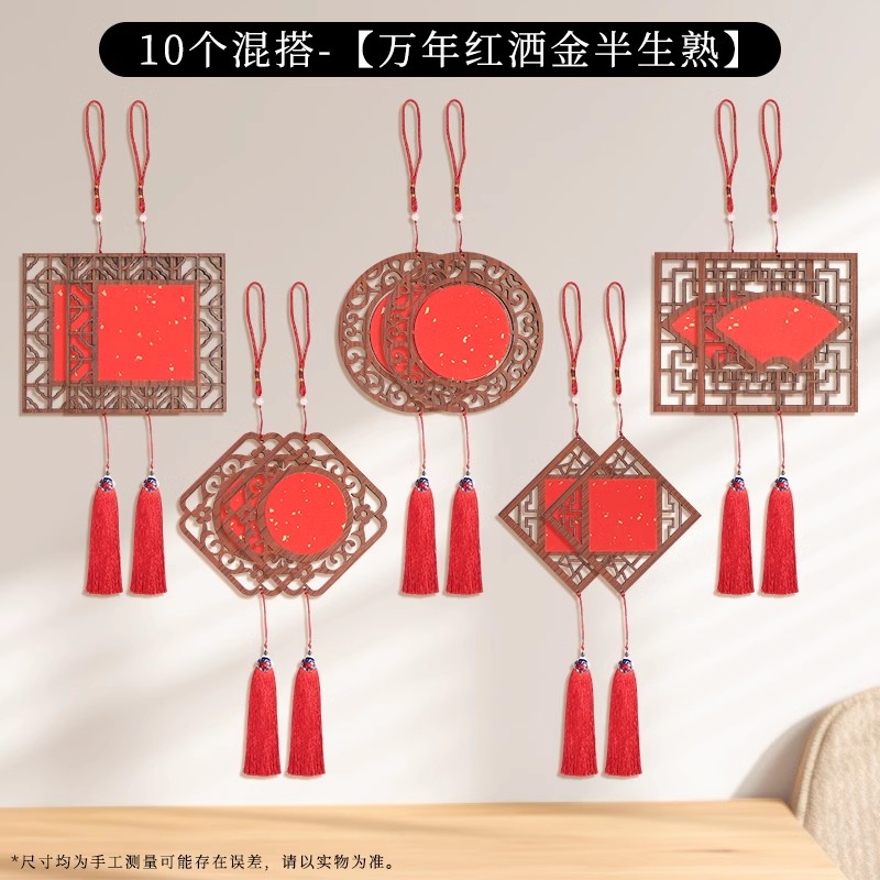新中式木质镂空宣纸挂件万年红半生熟硬卡斗方手写福字红纸福卡挂件书法挂件国画专用书法作品纸创意对联挂饰