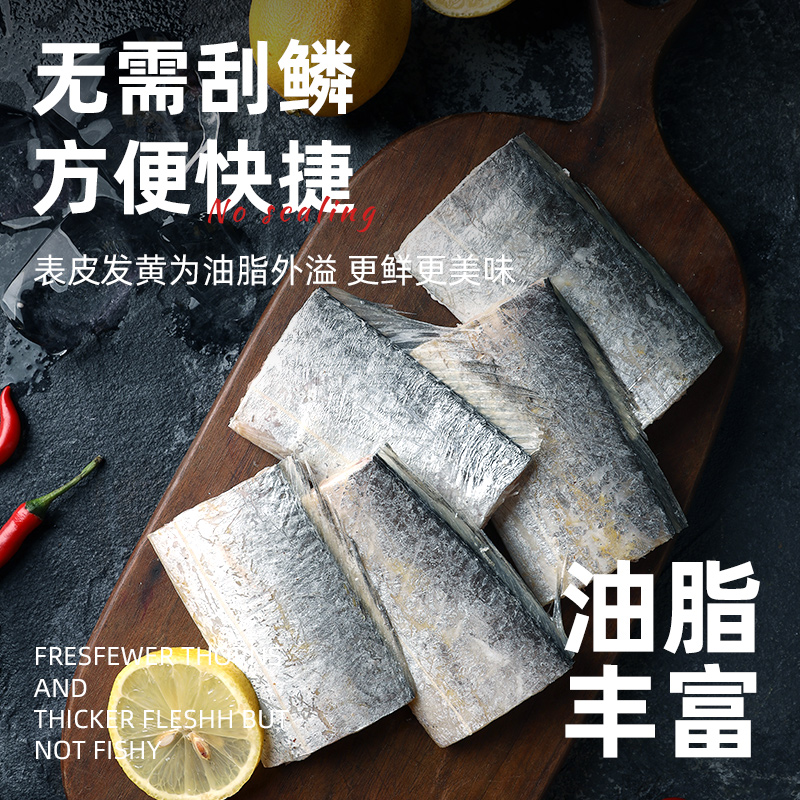 舟山带鱼中段新鲜海鲜刀鱼鲜活冷冻5斤装特大带鱼段东海整箱水产