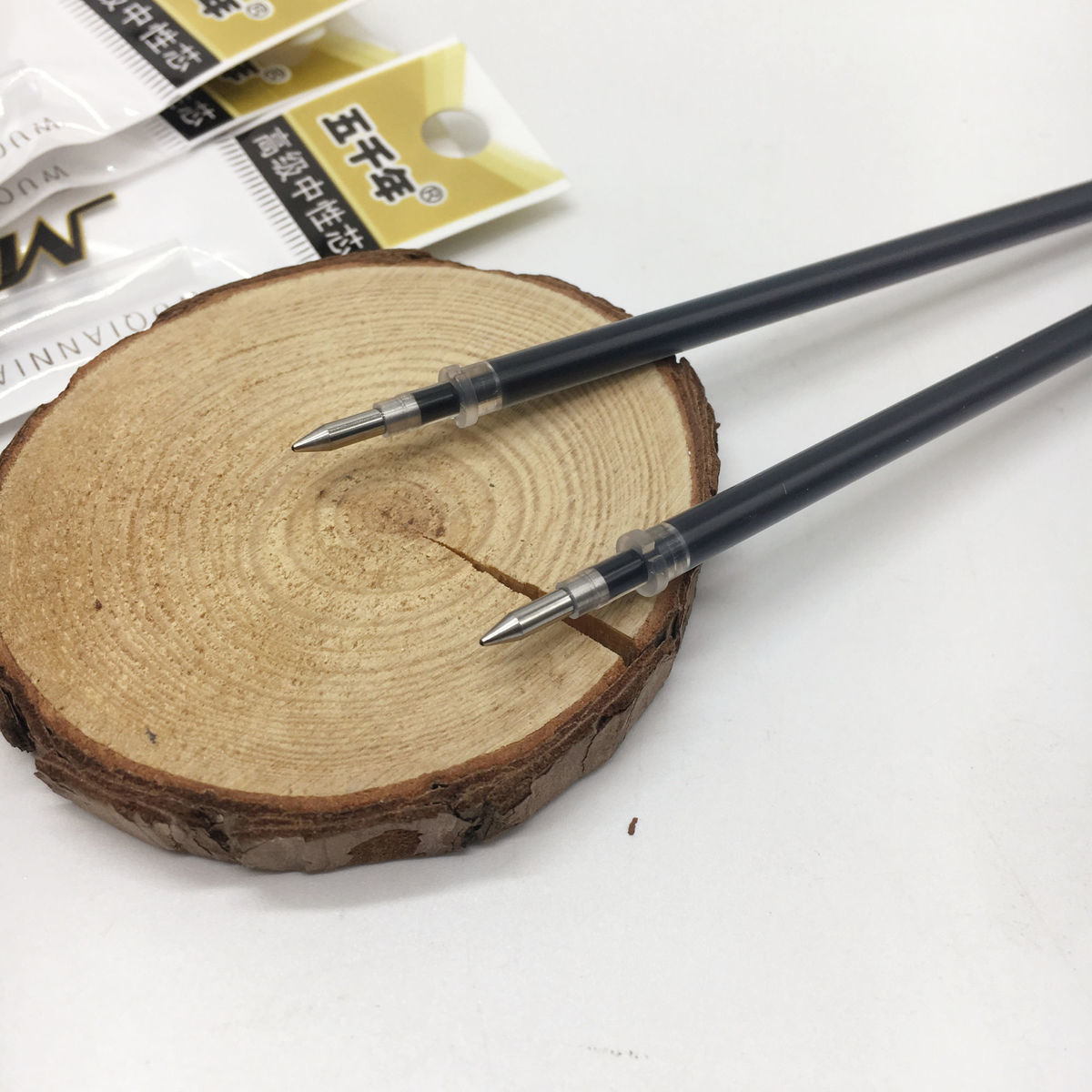 五千年笔芯0.5子弹头顺滑0.38针管头黑红蓝墨蓝色签字中性笔替芯