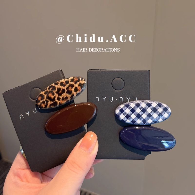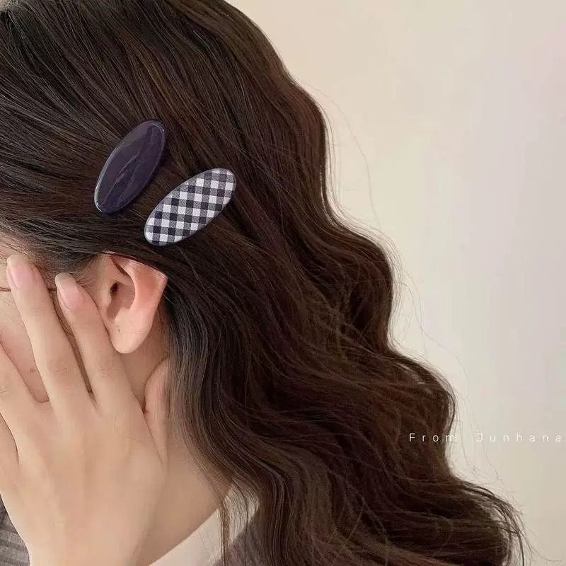 蓝色格纹椭圆发夹女2025新款高级感测边夹刘海夹子头饰发夹发饰