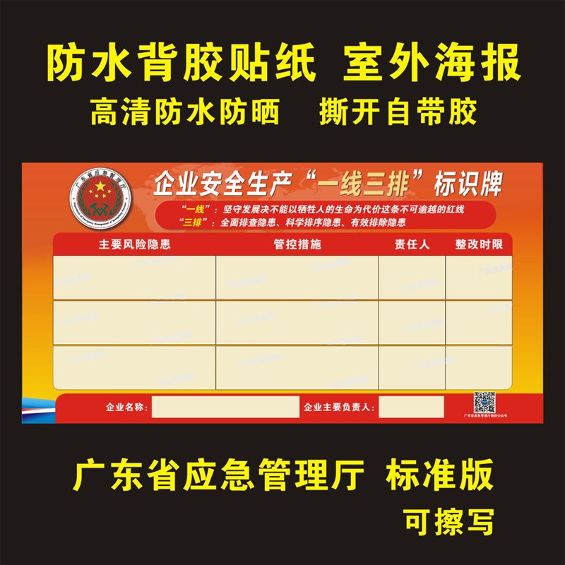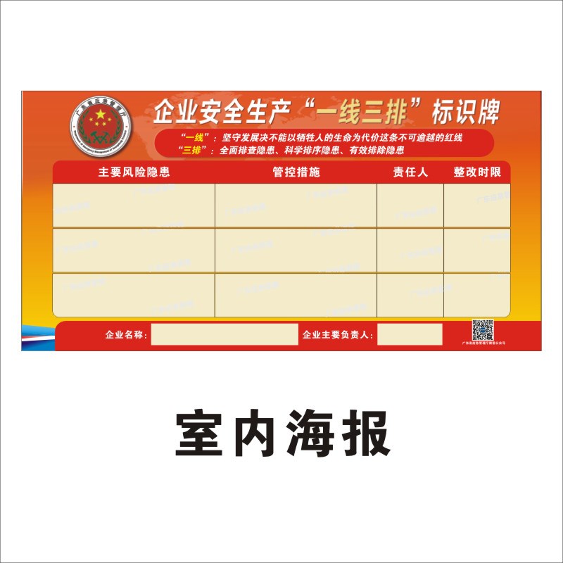 一线三排标识牌应急管理主要风险隐患管J控措施企业安全生产海报