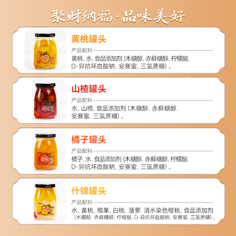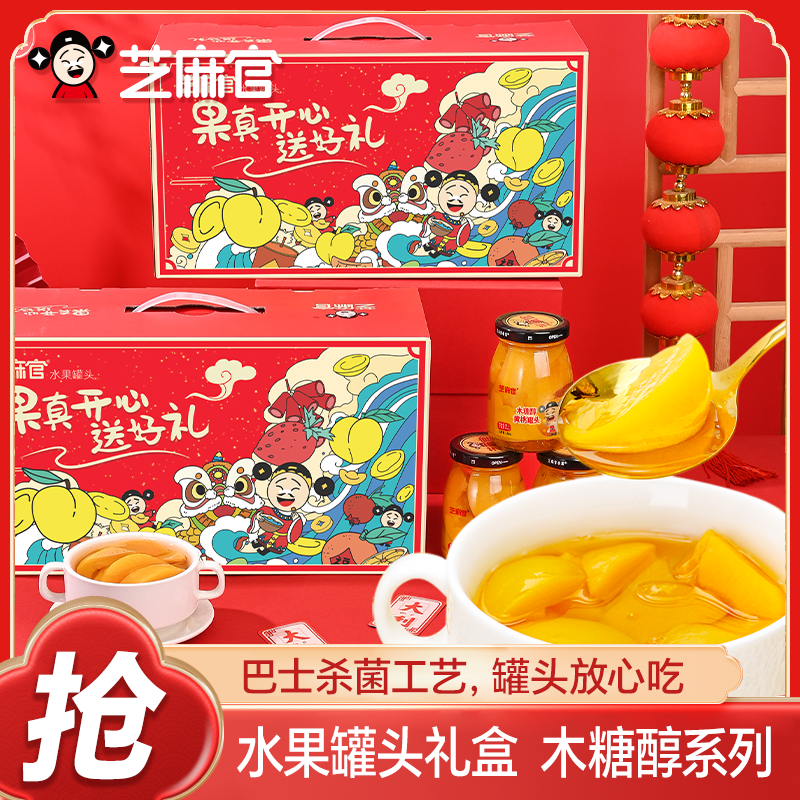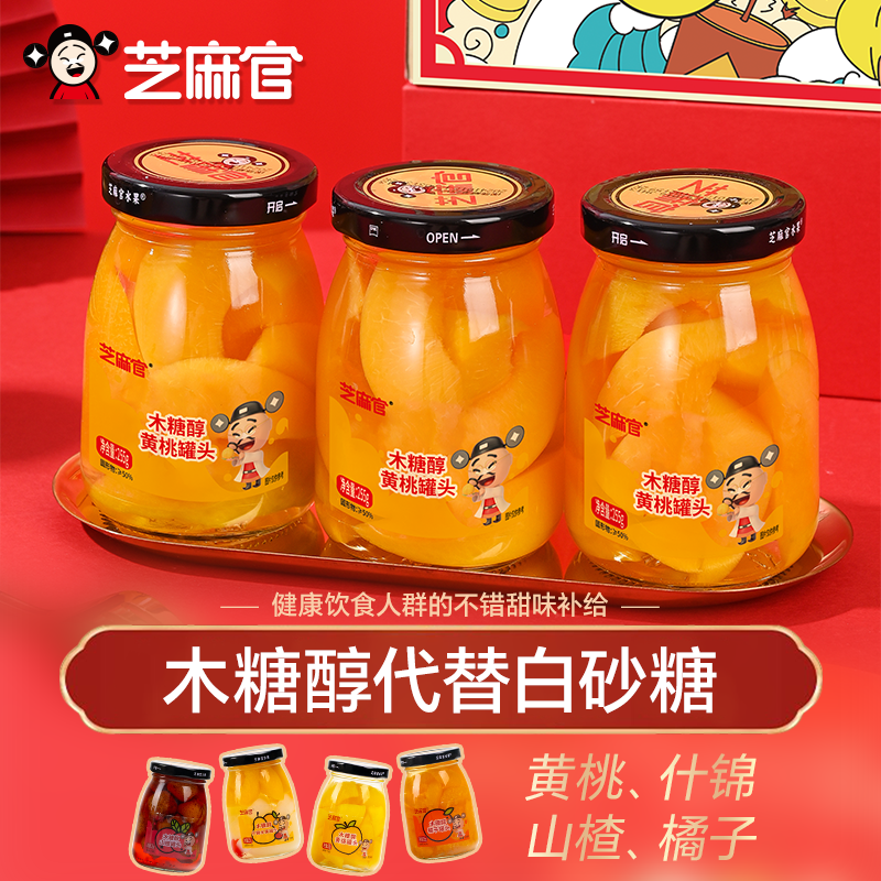 芝麻官黄桃罐头礼盒装255g*8罐木糖醇水果罐头礼盒中秋送礼橘子
