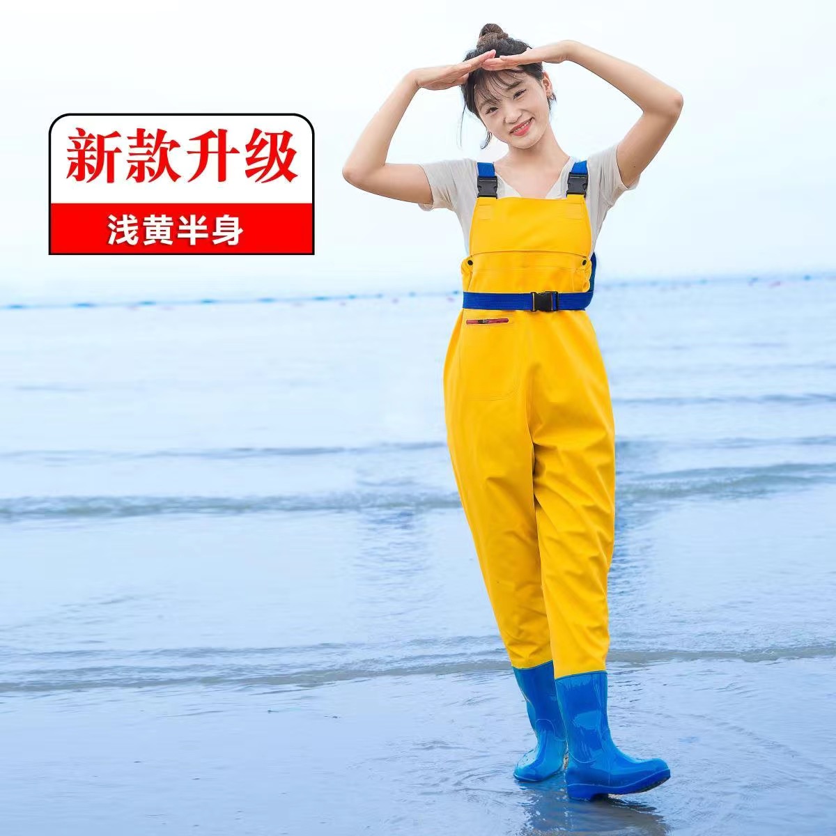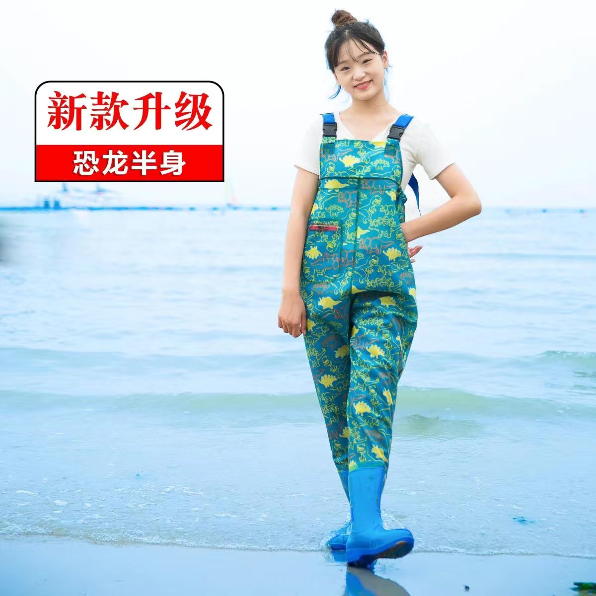 女士下水裤半身连体抓捕鱼沙滩雨鞋大童防水雨裤儿童赶海涉水衣服