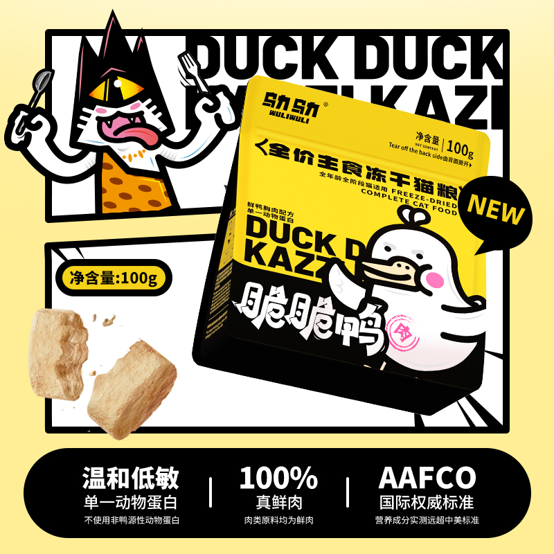 乌力乌力脆脆鸭主食冻干猫粮单一肉源脆块生骨肉零食100g国货全价