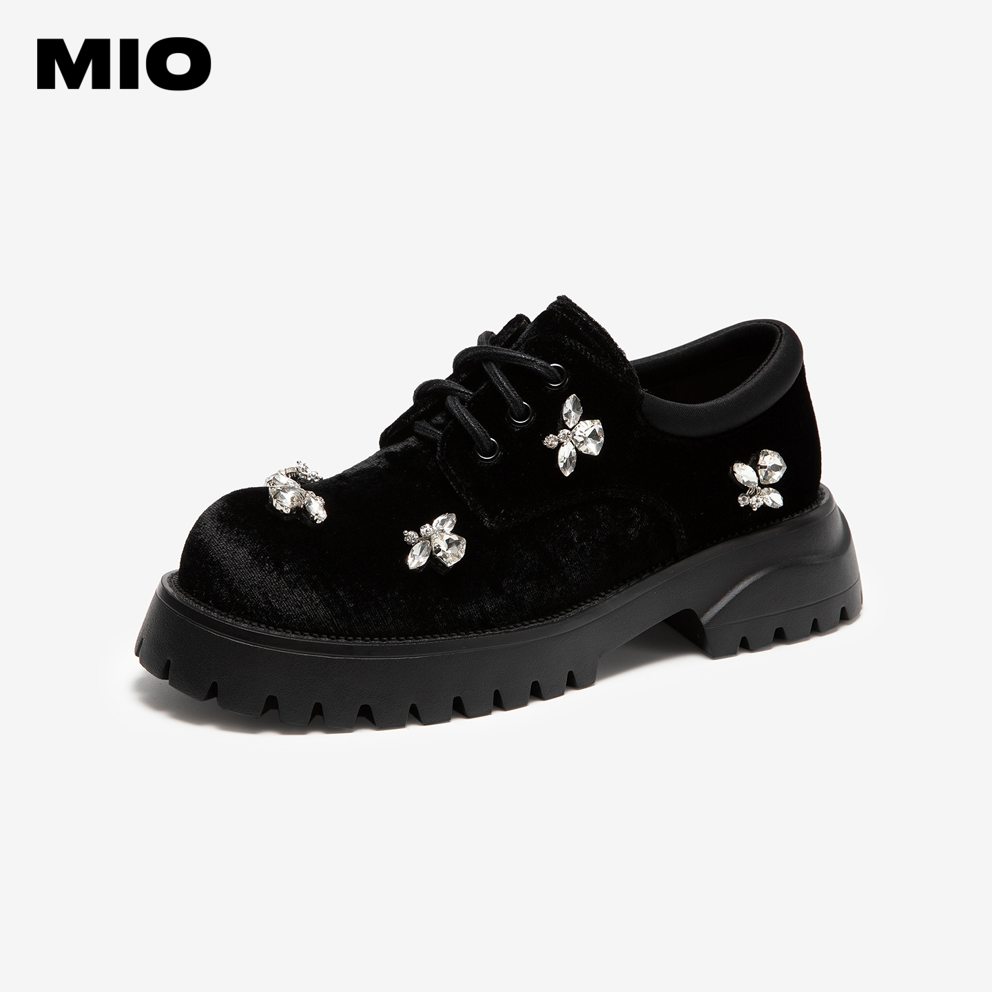 MIO米奥2025秋季新款牛津鞋圆头学院风千金乐福钻饰厚底松糕鞋女