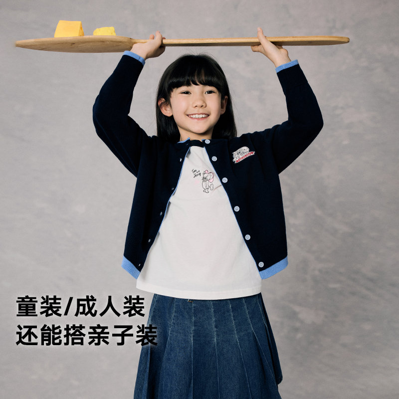 【猫和老鼠】马拉丁童装儿童25秋装新品大小童撞色假两件毛衣开衫