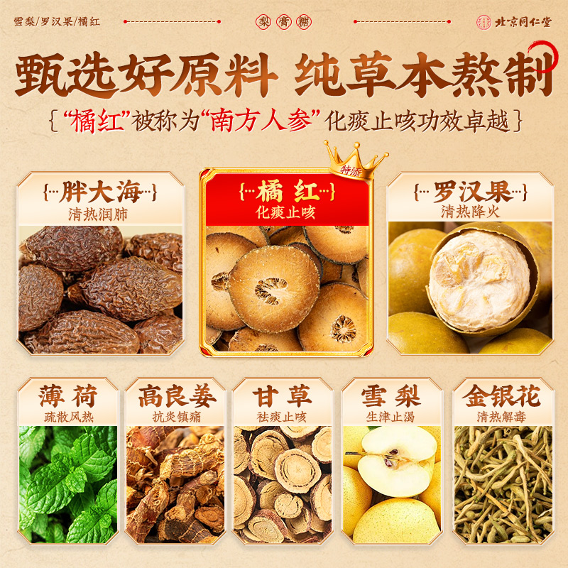 北京同仁堂百草梨膏糖橘红润喉化痰止咳润肺纯手工正宗官方旗舰店