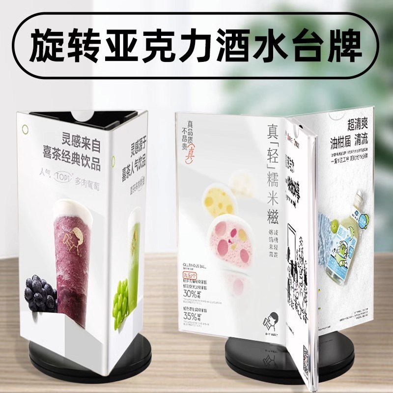 亚克力旋转酒水牌台卡高品质a4桌牌a5三片六面台签餐牌菜单展示牌