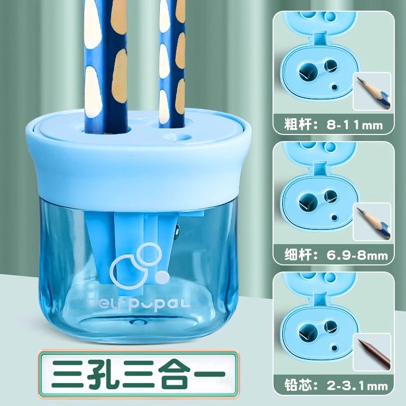 得力儿童卷笔刀三孔转笔削笔刀小学生幼儿园3孔迷你型专用手动刨笔机加粗铅笔刀削器双孔大口径多功能旋笔刀