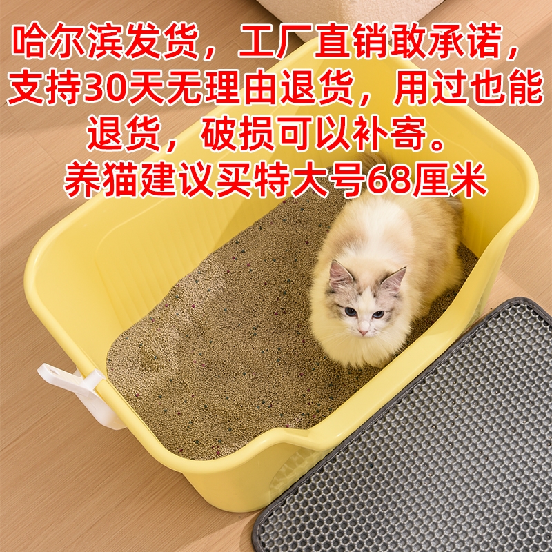 麦宝隆猫砂盆超大号特大开放半封闭厕所防外溅巨型加高缅因猫屎盆