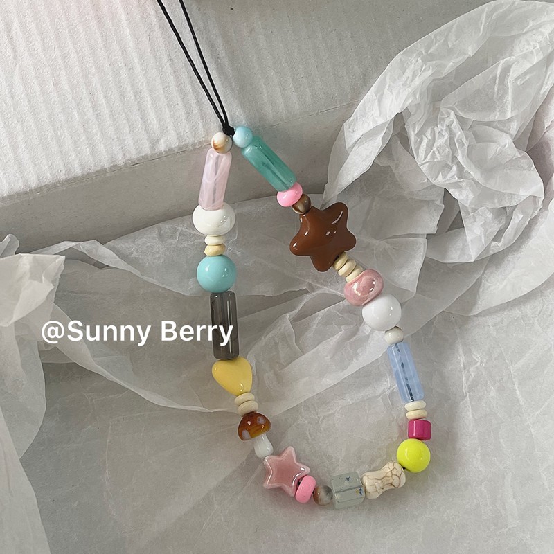 韩系ins千禧少女夏日多巴胺彩色陶瓷串珠手机链ccd挂绳链条挂件
