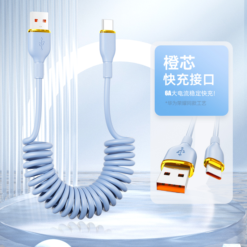 数意100W闪充伸缩弹簧线双typec车载carplay数据线适用iPhone15/16华为vivo小米OPPO荣耀便携手机超快充电线