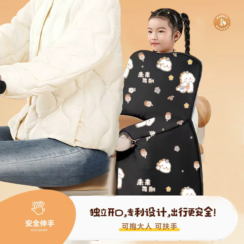 电动车后座挡风被儿童冬季亲子款加绒加厚电瓶车冬款防水防风罩