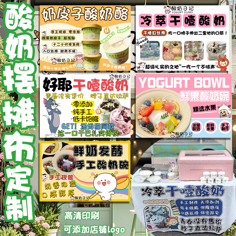 酸奶摆摊布专业条幅定制网红摆摊挂布设计印刷夜市旗帜布展示制作
