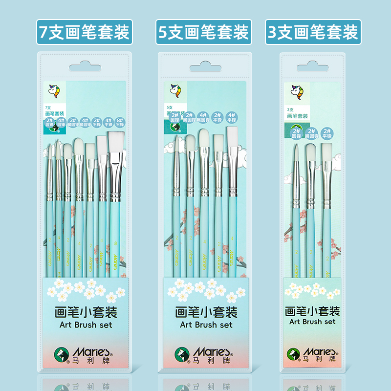 马利丙烯水粉水彩尼龙画笔鸭舌型油画笔美术生专用勾线描边手绘画画色彩笔排笔初学者画材圆形用笔扁圆峰套装