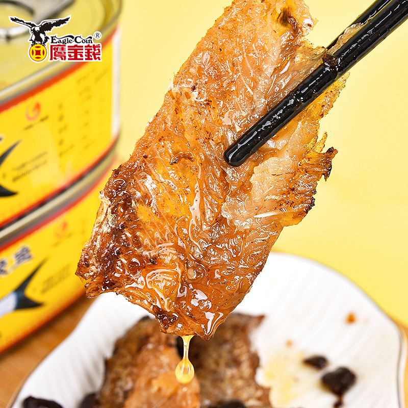 鹰金钱豆豉鲮鱼罐头经典227g下饭菜开盖即食鱼肉熟食速食广东特产