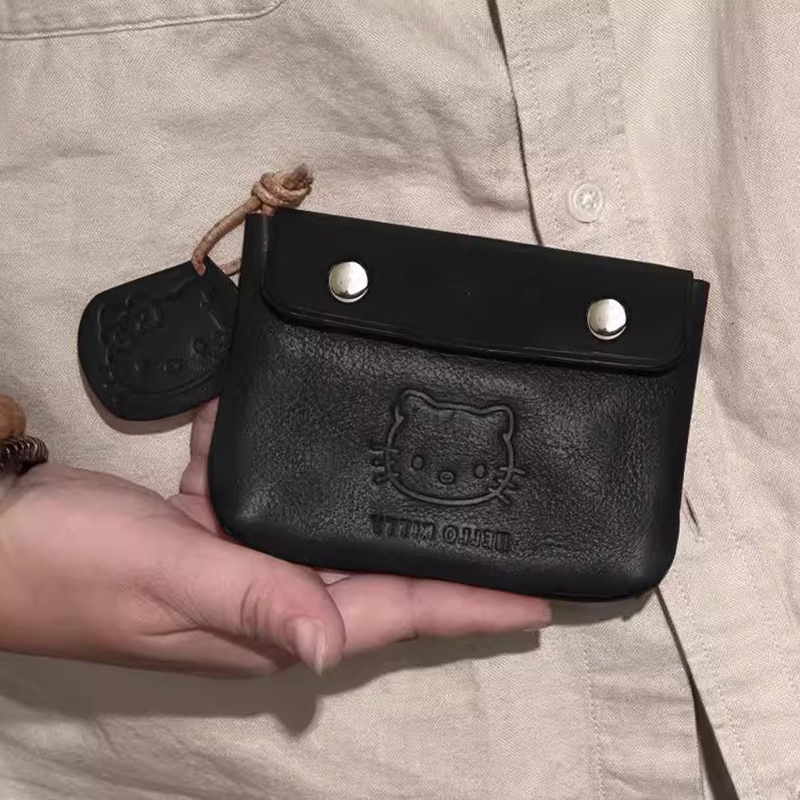 HelloKitty手工皮质零钱包女可爱迷你便携耳机钥匙证件随身小卡包