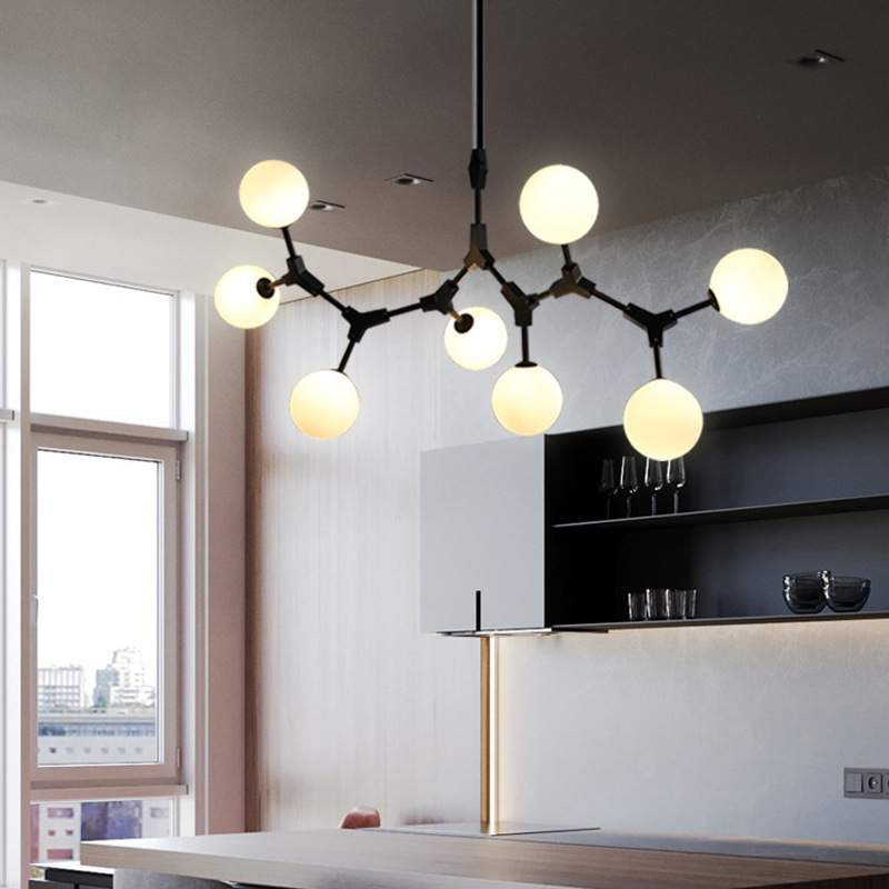 北欧式客厅灯具美式艺术餐厅吧台卧室铁艺树枝魔豆吊灯Y字叉魔豆