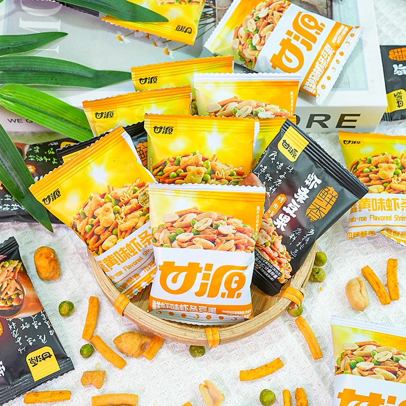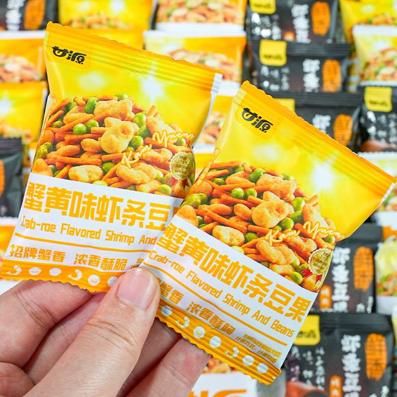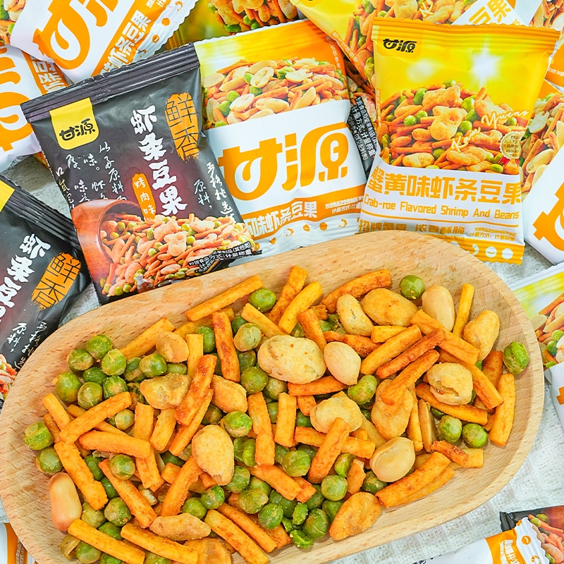甘源鲜虾味虾条豆果烤肉味600g童年怀旧虾条混合青豌豆小零食批发