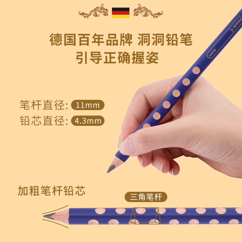 LYRA艺雅天琴旗舰店德国进口洞洞铅笔粗杆三角形开学季洞洞笔学生儿童初学者改善握笔姿势学龄前幼儿园b铅笔