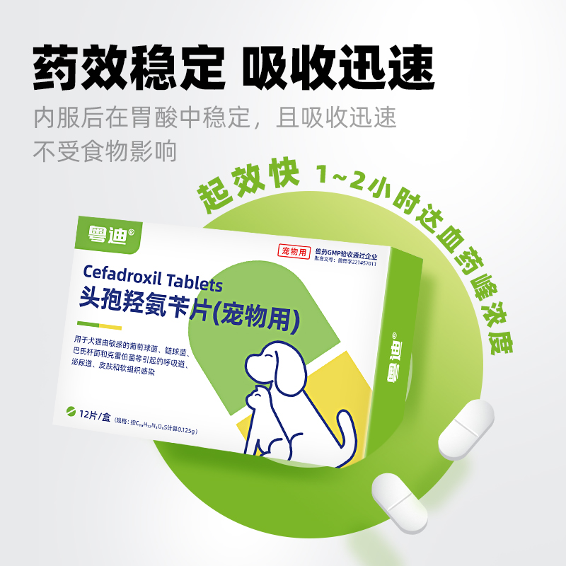 头孢羟氨苄片消炎药治疗猫狗感冒咳嗽宠物内外炎症感染抗菌消炎用