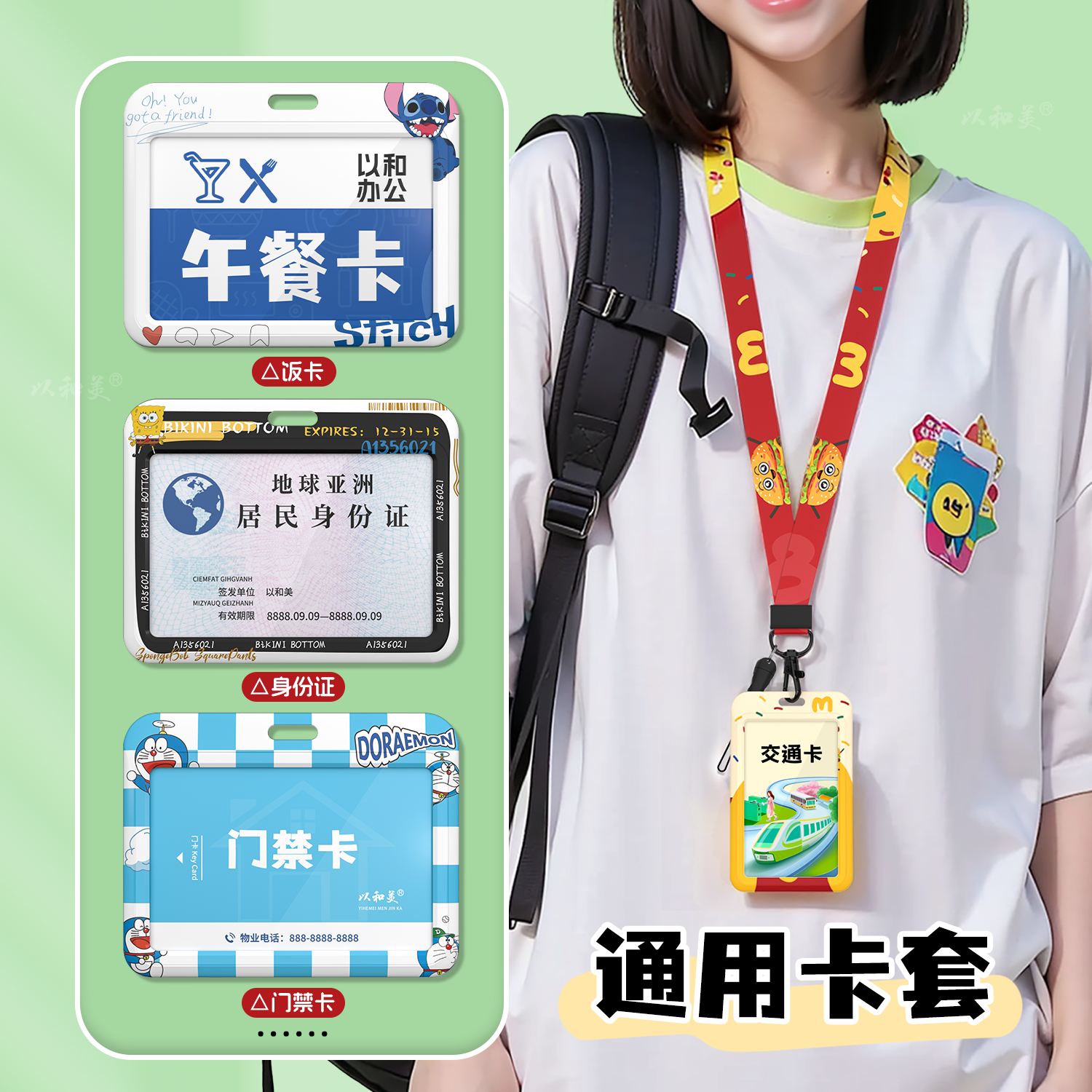 个性卡套饭卡校园卡公交卡学生卡套挂脖防丢证件保护套随身证卡片套地铁身份证硬卡套ins风卡通门禁卡工牌套