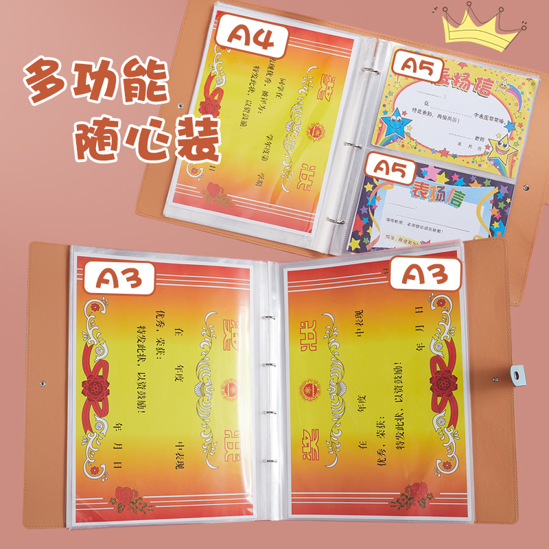 奖状收集册男孩女孩大号a4小学生中学收纳整理神器a3超大儿童透明插页式卡通收藏册活页可挂皮面证书收纳册