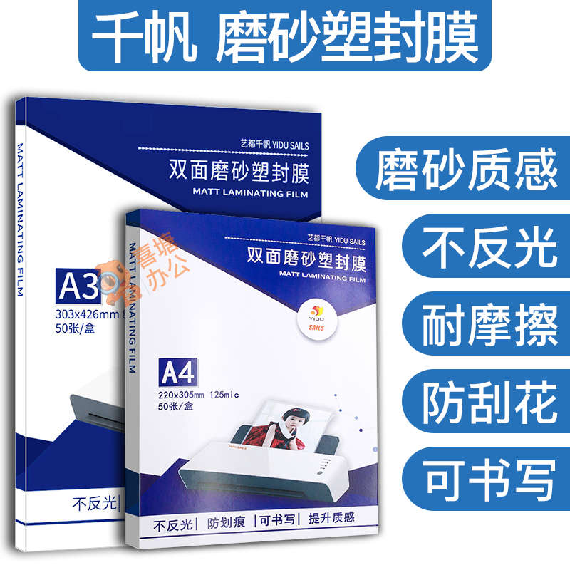 千帆A3A4磨砂i塑封膜7.5丝8C过塑膜文件相片照片保护膜哑光过胶